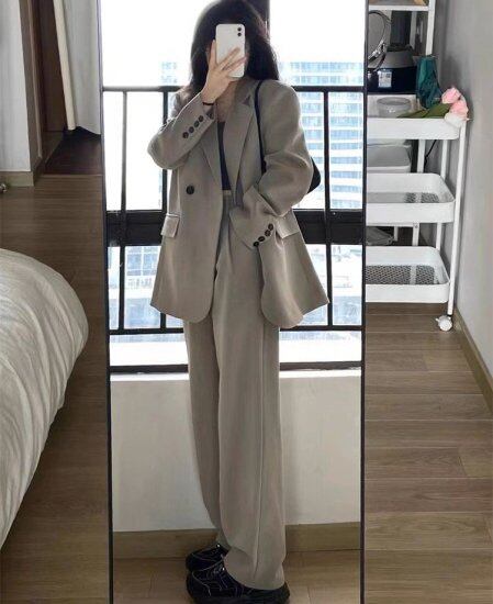 セットアップ レディース パンツスーツ テーラードジャケット シングルブレスト 長袖 オーバーサイズ ワイドパンツ ロング タック カジュアル マニッシュ ユニセックス 3color おしゃれ
