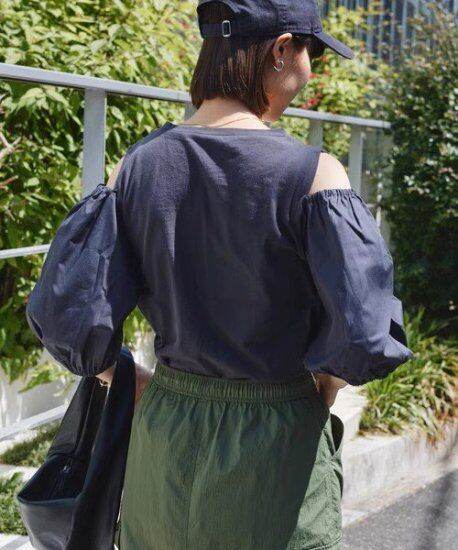 肩出しデザインがかわいいコットントップス。