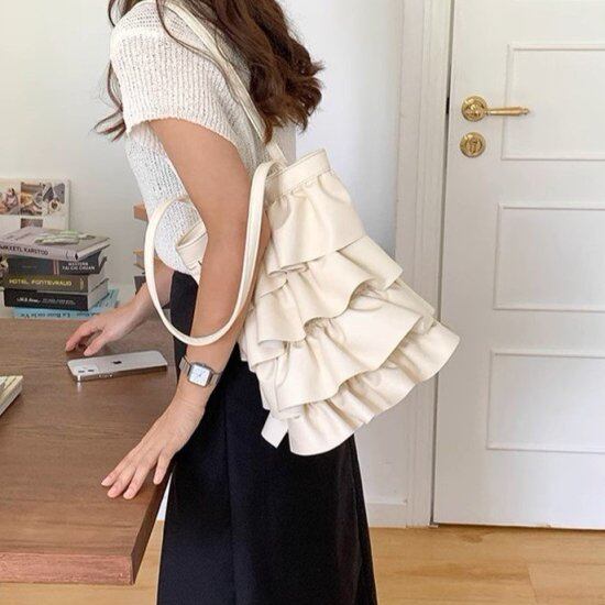 トートバッグ レディース フリル ショルダーバッグ ティアード フリルバッグ マグネット レース 無地 レトロ クラシカル かわいい ガーリー sweet 甘め 個性的 カジュアル バッグ おしゃれ