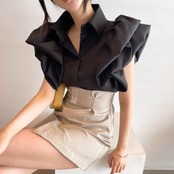 ボリュームあるシルエットが目を惹く半袖ブラウス。