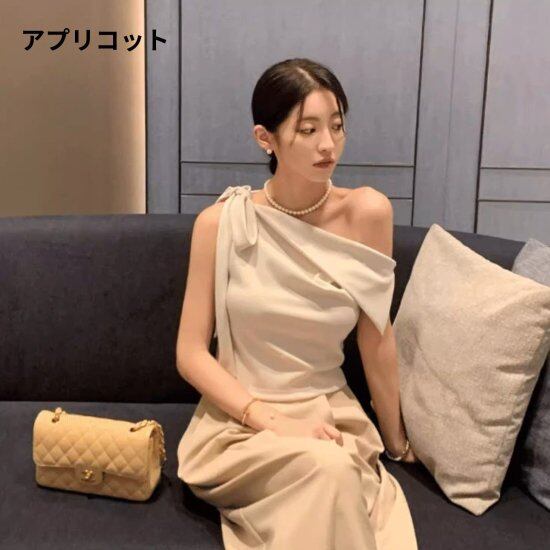 オフショルダーブラウス レディース ワンショルダー リボン アシンメトリー ノースリーブ シャツ ブラウス プルオーバー レトロ クラシカル きれいめ エレガント 2color パーティー おしゃれ