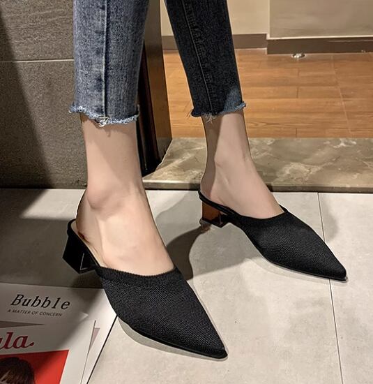 ミュール レディース 靴 シューズ パンプス シンプル 無地 ポインテッドトゥ 太ヒール チャンキーヒール きれいめ カジュアル お出かけ おしゃれ 履きやすい 歩きやすい 美脚 脚長 ファッション