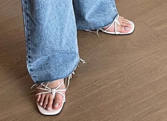 細いストラップが魅力的なサンダル。
