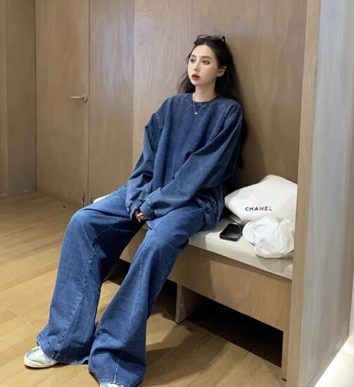 セットアップ レディース 上下セット 2点セット ツーピース ゆったり オーバーサイズ トップス 長袖 トレーナー ボトムス ワイドレッグ ロングパンツ シンプル カジュアル お出かけ リラックス