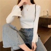 長袖ニット レディース ワイドスリーブ スカラップ ベルスリーブ セーター プルオーバー 長袖 ボートネック ボリューム袖 スリム レトロ クラシカル フェミニン 4color ガーリー おしゃれ