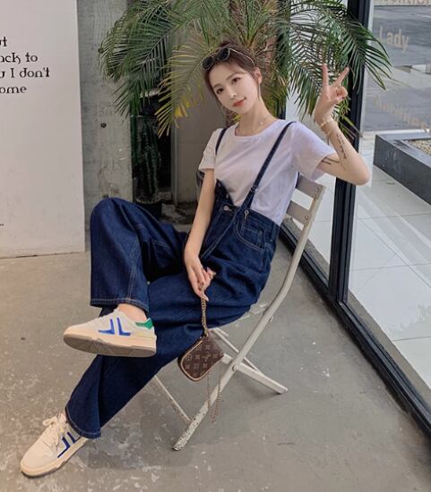 セットアップ レディース 上下セット 2点セット Tシャツ 半袖 ラウンドネック 白T オーバーオール サロペット デニム カジュアル お出かけ おしゃれ ツーピース サスペンダー アシンメトリー