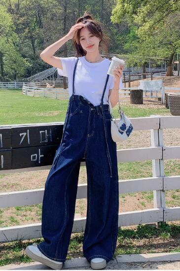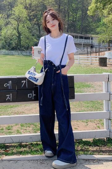 セットアップ レディース 上下セット 2点セット Tシャツ 半袖 ラウンドネック 白T オーバーオール サロペット デニム カジュアル お出かけ おしゃれ ツーピース サスペンダー 女性 ファッション