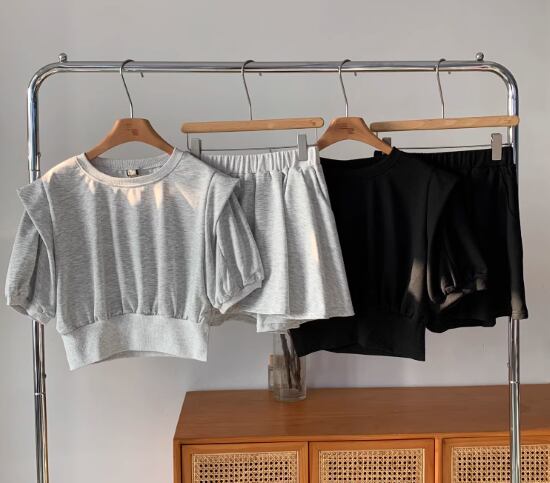 セットアップ レディース 上下セット 2点セット ツーピース スウェット トップス 半袖 ラウンドネック パフスリーブ ボトムス ショートパンツ ハイウエスト ウエストゴム カジュアル ルームウェア