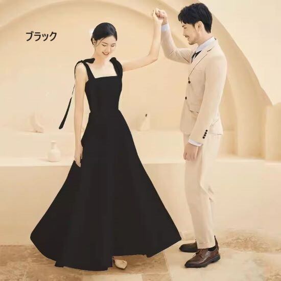 ウェディングドレス 大きいサイズ 白 黒 ロングドレス 花嫁 二次会 ドレス 肩紐 リボン 結婚式 Aライン パーティードレス ロングドレス ワンピース キャミソール 上品 エレガント 背中開き