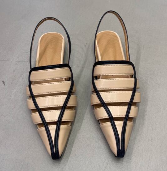ローヒールサンダル レディース 靴 シューズ バックストラップ ポインテッドトゥ バイカラー コントラストカラー 履きやすい 歩きやすい 疲れにくい カジュアル お出かけ おしゃれ ファッション